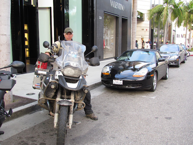 Pare la moto en Rodeo Drive frente a Louis Vuiton, tienda conocida y preferida de los políticos. y le dije al que estaba en la puerta, si no querían esponsorearme, ya que de nuestro país tenian buenos clientes, no se si mi ingles es muy malo, y no me entendió, o se hizo el tonto.